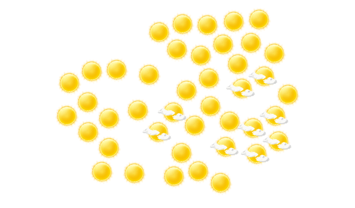 In Kpandae ist es am Morgen sonnig bei Temperaturen von 27°C. Des Weiteren zeigt sich mittags und auch abends die Sonne nur vereinzelt bei sonst wolkigem Himmel bei Temperaturen von 32 bis 40°C. In der Nacht gibt es nur selten Lücken in der Wolkendecke bei einer Temperatur von 28°C.