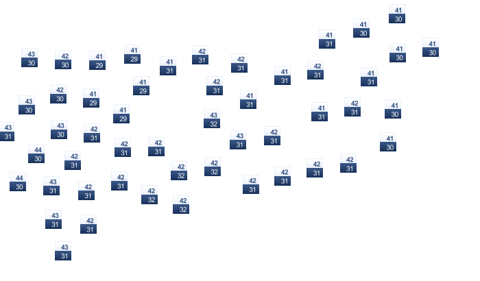 | 32 | 32 | 32 | 32 | 31 | 29 | 27 | 27 | 29 | 30 | 31 | 31 |