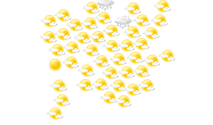 In Kong scheint morgens die Sonne bei Werten von 23°C. Später zeigt sich die Sonne zwischen einzelnen Wolken und das Thermometer klettert auf 32°C. Abends ist es regnerisch und die Temperaturen liegen zwischen 20 und 24 Grad. Nachts ist der Himmel bedeckt bei Werten von 21°C.