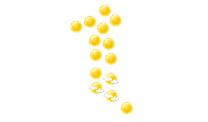 In Ho scheint morgens die Sonne bei Werten von 25°C. Des Weiteren stören am Nachmittag und am Abend nur einzelne Wolken den sonst blauen Himmel und die Temperaturen liegen zwischen 27 und 36 Grad. Nachts gibt es lockere Bewölkung bei Tiefsttemperaturen von 25°C.