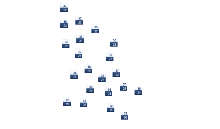 | 32 | 32 | 32 | 32 | 31 | 29 | 27 | 27 | 29 | 30 | 31 | 31 |