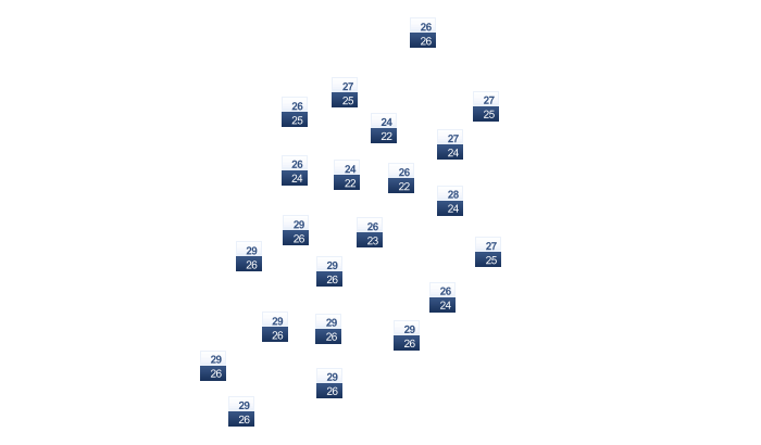In Gouyave gibt es am Tag ungestörten Sonnenschein und die Temperaturen liegen zwischen 25 und 27°C. Nachts ist es wolkenlos bei Tiefstwerten von 25°C.