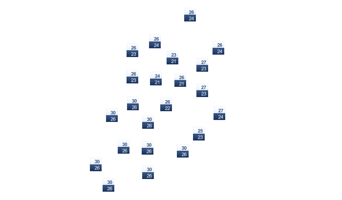 In Paradise gibt es von morgens bis zum Nachmittag eine Mischung aus Sonne und Wolken bei Werten von 21 bis zu 24°C. Am Abend sind in Paradise Teile des Himmels mit Wolken bedeckt bei Temperaturen von 21°C. In der Nacht ist es wolkig bei Tiefstwerten von 21°C.