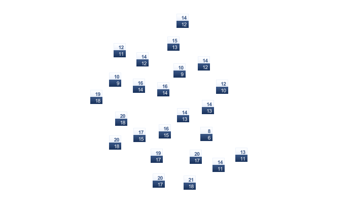 | 11 | 13 | 14 | 17 | 20 | 24 | 27 | 28 | 25 | 21 | 17 | 14 |