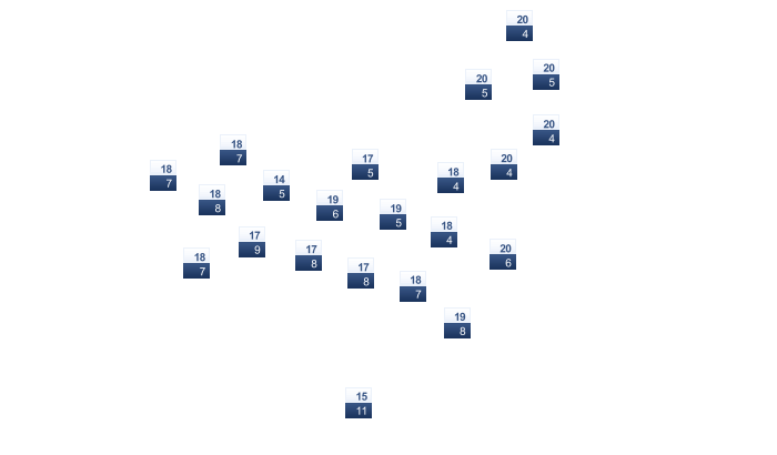 | 11 | 13 | 14 | 17 | 20 | 24 | 27 | 28 | 25 | 21 | 17 | 14 |