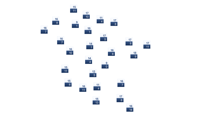 | 11 | 13 | 14 | 17 | 20 | 24 | 27 | 28 | 25 | 21 | 17 | 14 |
