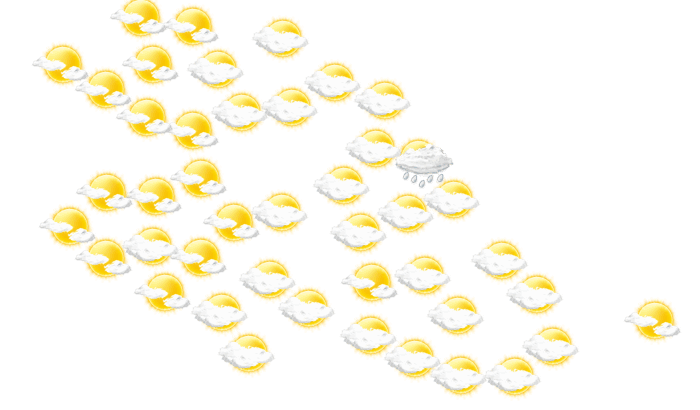 In Lárisa wechseln sich von morgens bis zum Nachmittag Wolken und Sonne ab und die Temperaturen liegen zwischen 5 und 12°C. Abends bilden sich in Lárisa vereinzelt Wolken bei Werten von 7 bis zu 9°C. Nachts ziehen Wolkenfelder durch und die Luft kühlt sich auf 2°C ab. Böen können Geschwindigkeiten zwischen 6 und 24 km/h erreichen.