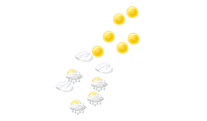 In Ylig ist es von Tagesbeginn bis zum Nachmittag bewölkt bei Temperaturen von 26 bis 28°C. Am Abend gibt es in Ylig Regen bei Werten von 26°C. Nachts ist es bedeckt und die Temperatur sinkt auf 25°C.