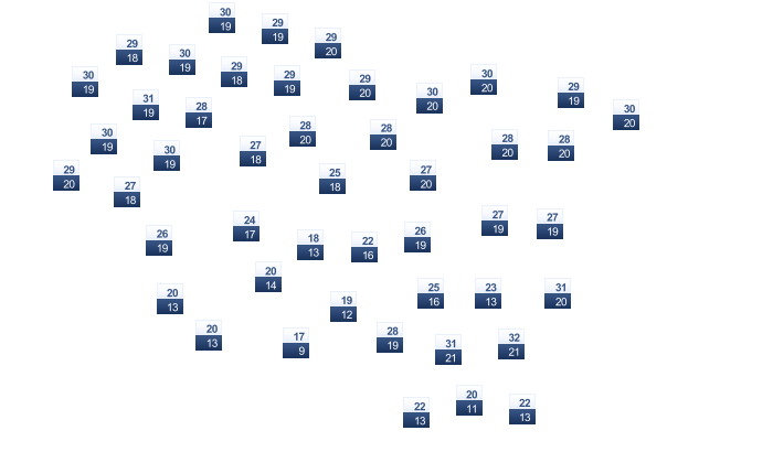 | 23 | 25 | 27 | 28 | 29 | 27 | 26 | 26 | 26 | 24 | 23 | 22 |