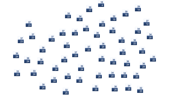 | 23 | 25 | 27 | 28 | 29 | 27 | 26 | 26 | 26 | 24 | 23 | 22 |