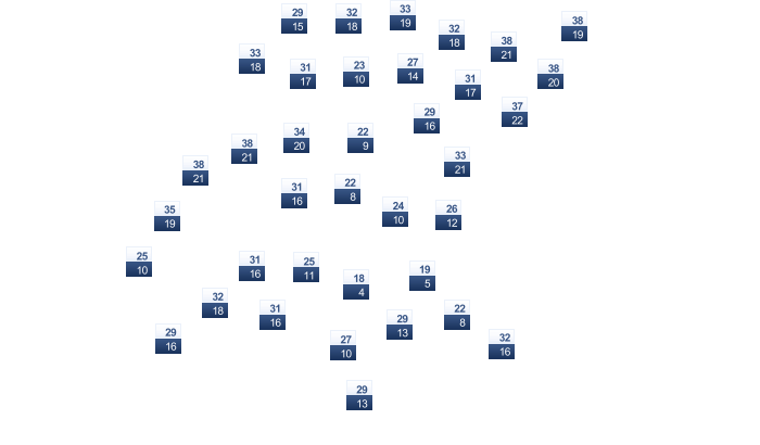 | 23 | 25 | 27 | 28 | 29 | 27 | 26 | 26 | 26 | 24 | 23 | 22 |