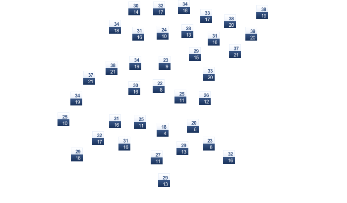 | 12 | 12 | 14 | 14 | 16 | 16 | 16 | 15 | 16 | 15 | 14 | 13 |