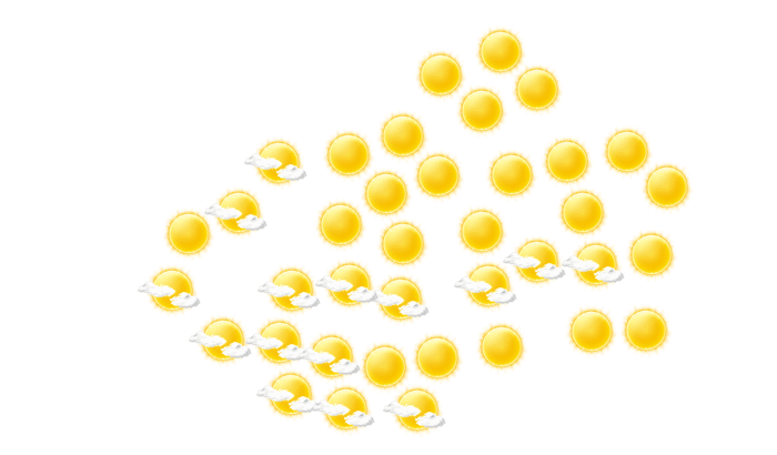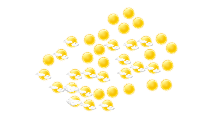 In Monjas strahlt tagsüber die Sonne bei Temperaturen von 14 bis 29°C. Nachts bilden sich vereinzelt Wolken bei Werten von 15°C.