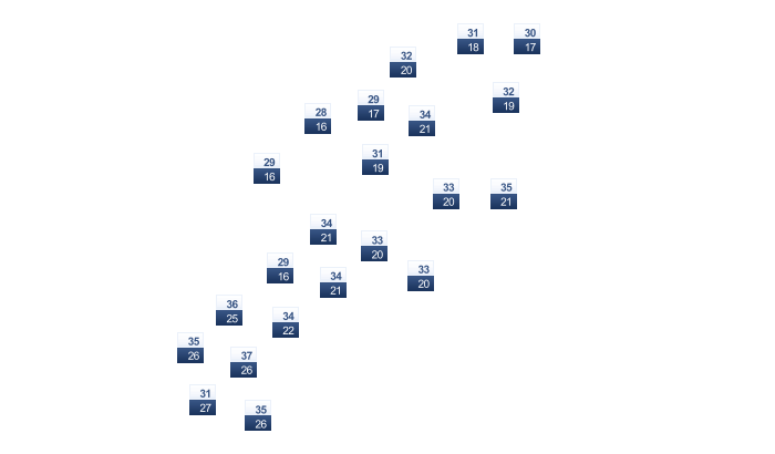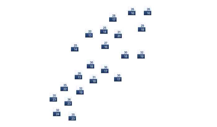 | 23 | 25 | 27 | 28 | 29 | 27 | 26 | 26 | 26 | 24 | 23 | 22 |