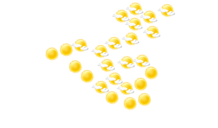 In Retalhuleu strahlt morgens die Sonne bei Temperaturen von 22°C. Des Weiteren kommt es am Nachmittag und am Abend zu einem Mix aus Sonne und Wolken bei Werten von 24 bis zu 33°C. Nachts gibt es keine Wolken und die Sterne sind klar zu erkennen bei Werten von 22°C.
