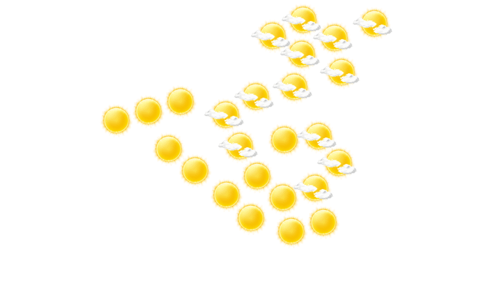 In San Sebastián gibt es morgens ungestörten Sonnenschein bei Werten von 22°C. Im Laufe des Mittags sollte der Schirm nicht vergessen werden, da es regnet und die Temperatur steigt auf 33°C. Am Abend bleibt in San Sebastián die Wolkendecke geschlossen bei Temperaturen von 23 bis 24°C. In der Nacht ist ein Blick auf die Sterne nur vereinzelt bei sonst wolkigem Himmel möglich bei Tiefstwerten von 22°C.