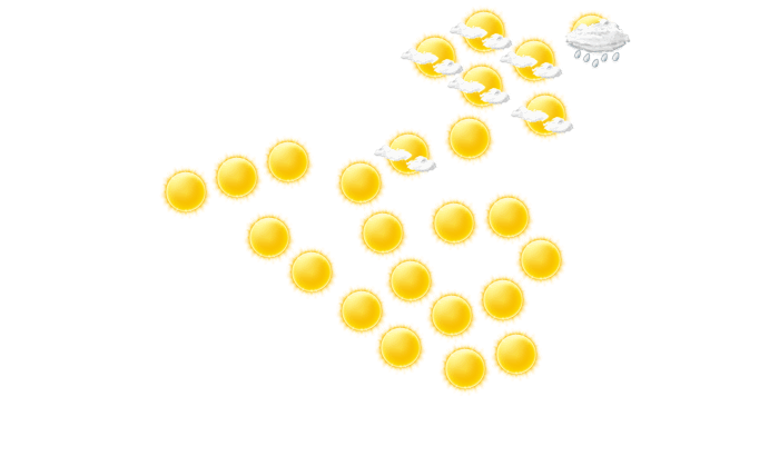 In Nuevo San Carlos strahlt am Morgen die Sonne bei Werten von 22°C. Im weiteren Tagesverlauf ist es leicht bewölkt und die Temperatur erreicht 33°C. Am Abend ist es in Nuevo San Carlos bedeckt bei Temperaturen von 24 bis 25°C. Nachts ziehen Wolkenfelder durch bei einer Temperatur von 23°C.