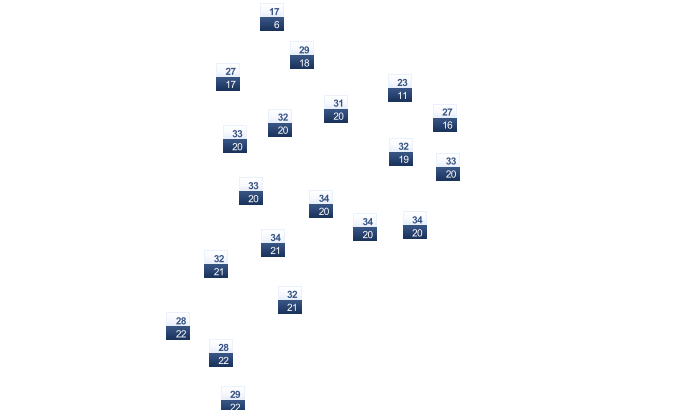 | 23 | 25 | 27 | 28 | 29 | 27 | 26 | 26 | 26 | 24 | 23 | 22 |