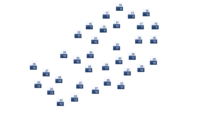 | 23 | 25 | 27 | 28 | 29 | 27 | 26 | 26 | 26 | 24 | 23 | 22 |