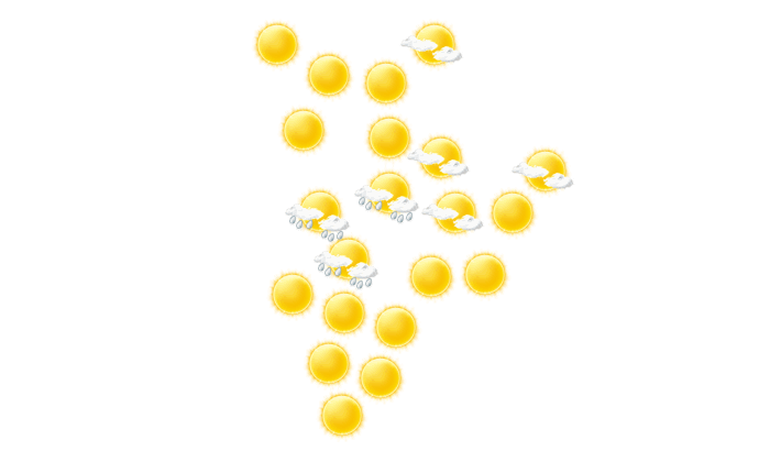 In Guatemala-Stadt gibt es morgens überwiegend blauen Himmel mit vereinzelten Wolken bei Werten von 13°C. Im Laufe des Mittags kann es zeitweise etwas Regen geben und die Temperatur erreicht 27°C. Am Abend fällt in Guatemala-Stadt Regen und die Temperaturen liegen zwischen 20 und 23 Grad. Nachts kann es vereinzelt zu Regen kommen bei Tiefstwerten von 14°C.