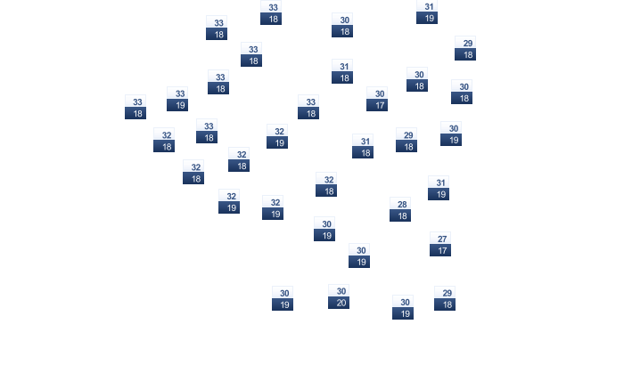 | 23 | 25 | 27 | 28 | 29 | 27 | 26 | 26 | 26 | 24 | 23 | 22 |