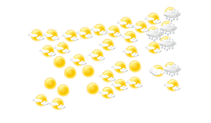 In Estanzuela gibt es tagsüber ungestörten Sonnenschein und die Temperaturen liegen zwischen 20 und 34°C. In der Nacht bleibt es bedeckt bei Werten von 20°C.