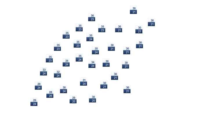 | 32 | 33 | 34 | 33 | 33 | 31 | 30 | 29 | 30 | 31 | 32 | 31 |
