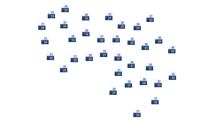 | 31 | 31 | 32 | 32 | 31 | 29 | 28 | 27 | 29 | 30 | 31 | 31 |