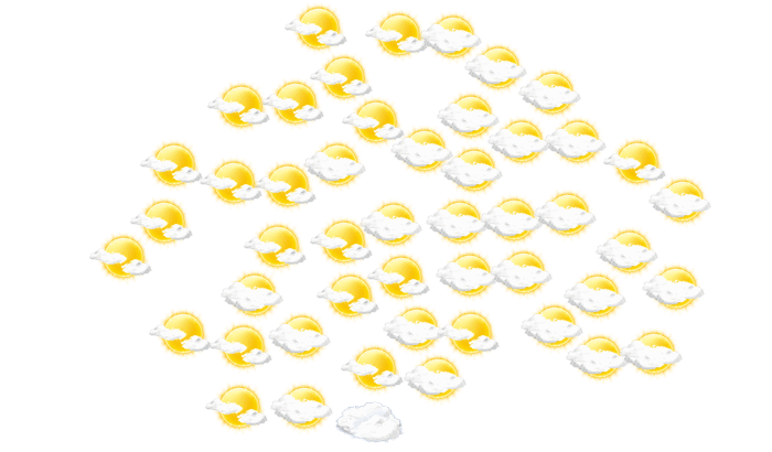 In Mongreppo zeigt sich am Morgen die Sonne zwischen einzelnen Wolken und die Temperatur liegt bei 21°C. Am Mittag ist es überwiegend dicht bewölkt und die Temperatur erreicht 31°C. Am Abend bilden sich in Mongreppo leichte Wolken bei Werten von 22 bis zu 25°C. Nachts verdecken einzelne Wolken den Himmel bei einer Temperatur von 21°C.