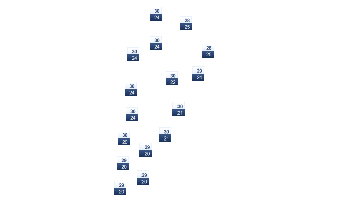 | 29 | 29 | 29 | 30 | 29 | 29 | 30 | 30 | 31 | 31 | 30 | 29 |