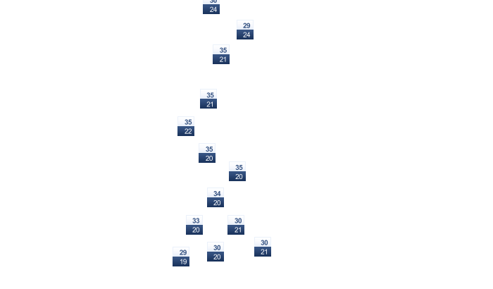 | 29 | 29 | 29 | 30 | 29 | 29 | 30 | 30 | 31 | 31 | 30 | 29 |