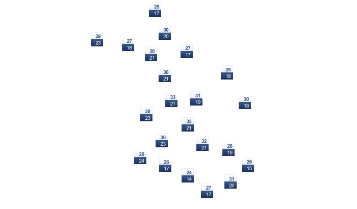 | 31 | 31 | 32 | 33 | 33 | 35 | 35 | 35 | 34 | 33 | 32 | 31 |