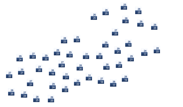 | 31 | 31 | 32 | 33 | 33 | 35 | 35 | 35 | 34 | 33 | 32 | 31 |