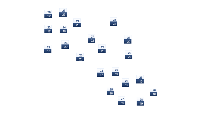 | 23 | 22 | 22 | 23 | 23 | 24 | 25 | 24 | 24 | 24 | 23 | 22 |
