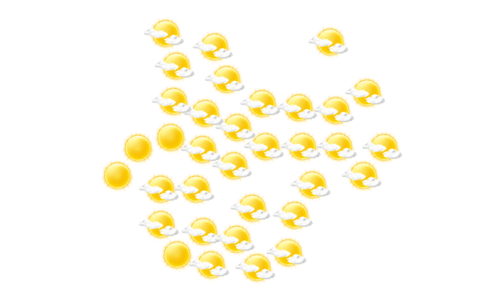 In El Triunfo gibt es von morgens bis zum Nachmittag eine Mischung aus Sonne und Wolken bei Werten von 21 bis zu 36°C. Am Abend ist in El Triunfo der Himmel bedeckt und die Temperaturen liegen zwischen 26 und 28 Grad. In der Nacht ist es bewölkt, die Sterne sind nur vereinzelt zu sehen bei Tiefstwerten von 22°C.