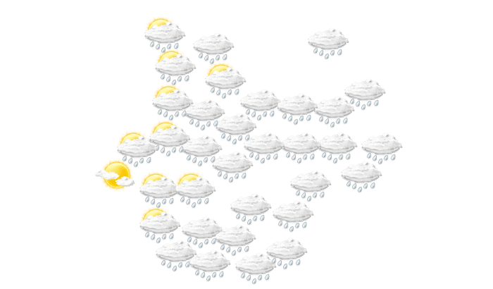 In Ciudad Choluteca wird morgens die Sonne von einzelnen Wolken verdeckt bei Werten von 22°C. Des Weiteren fällt mittags und auch abends Regen bei Temperaturen von 24 bis 29°C. Nachts regnet es bei Tiefstwerten von 22°C.