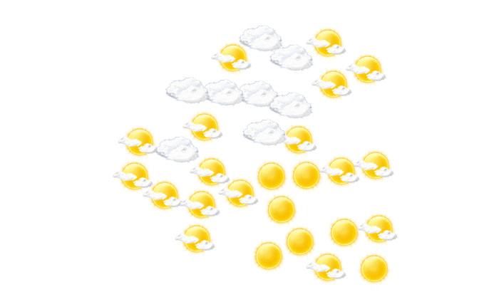 In Yarumela ziehen am Morgen Wolkenfelder durch bei Temperaturen von 20°C. Des Weiteren stören von mittags bis zum Abend hin nur einzelne Wolken den sonst blauen Himmel bei Temperaturen von 20 bis 27°C. In der Nacht überwiegt dichte Bewölkung, aber es bleibt trocken bei Werten von 20°C.