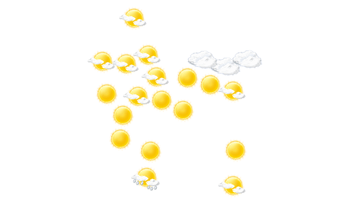 | 7 | 10 | 16 | 22 | 27 | 30 | 27 | 26 | 25 | 19 | 12 | 8 |