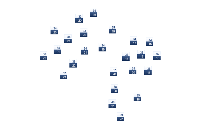| 22 | 26 | 32 | 38 | 42 | 41 | 35 | 33 | 33 | 33 | 29 | 24 |