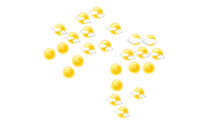 In Raipur zeigt sich morgens die Sonne zwischen einzelnen Wolken bei Werten von 31°C. Im weiteren Tagesverlauf scheint am Nachmittag und am Abend die Sonne bei Werten von 37 bis zu 44°C. In der Nacht ist es wolkenlos und das Thermometer fällt auf 29°C.