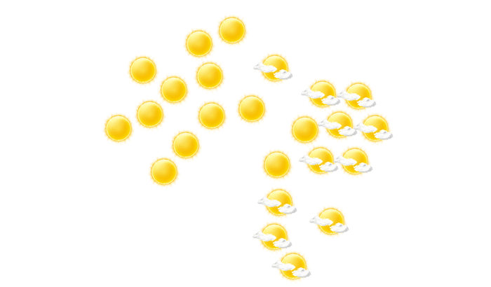| 7 | 10 | 16 | 22 | 27 | 30 | 27 | 26 | 25 | 19 | 12 | 8 |