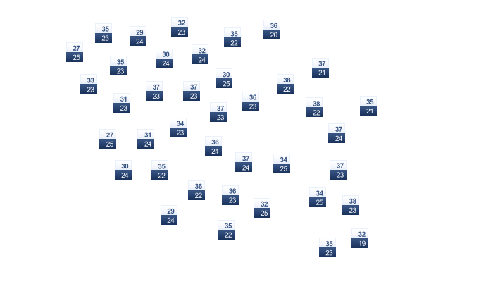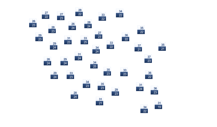 | 22 | 26 | 32 | 38 | 42 | 41 | 35 | 33 | 33 | 33 | 29 | 24 |