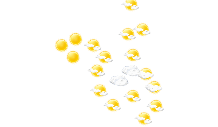 | 7 | 10 | 16 | 22 | 27 | 30 | 27 | 26 | 25 | 19 | 12 | 8 |