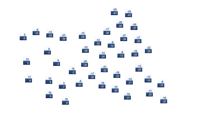 | 7 | 10 | 16 | 22 | 27 | 30 | 27 | 26 | 25 | 19 | 12 | 8 |
