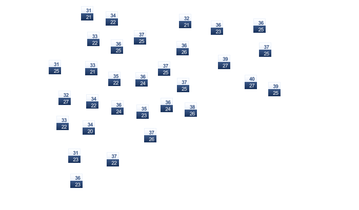 | 22 | 26 | 32 | 38 | 42 | 41 | 35 | 33 | 33 | 33 | 29 | 24 |