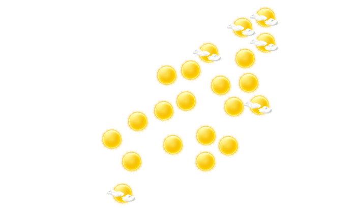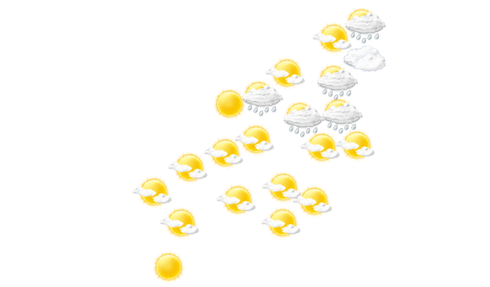 | 7 | 10 | 16 | 22 | 27 | 30 | 27 | 26 | 25 | 19 | 12 | 8 |
