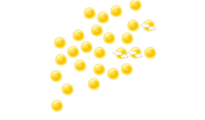 | 7 | 10 | 16 | 22 | 27 | 30 | 27 | 26 | 25 | 19 | 12 | 8 |