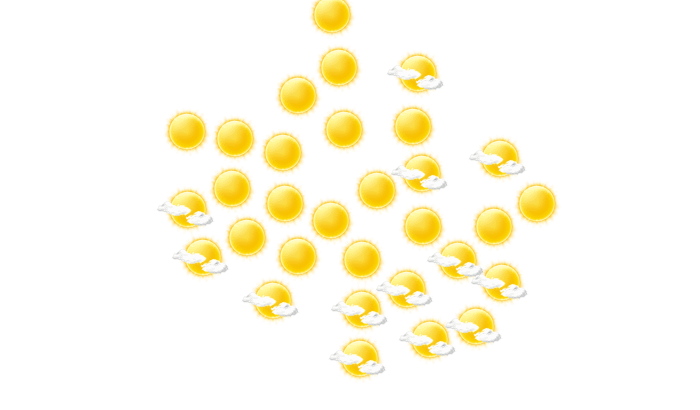 | 7 | 10 | 16 | 22 | 27 | 30 | 27 | 26 | 25 | 19 | 12 | 8 |