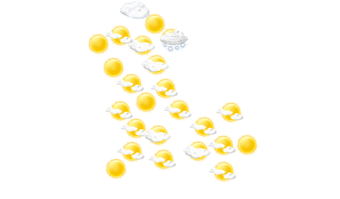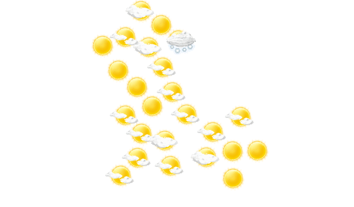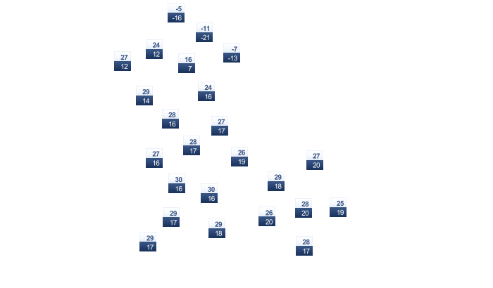 | 7 | 10 | 16 | 22 | 27 | 30 | 27 | 26 | 25 | 19 | 12 | 8 |