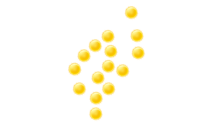 | 7 | 10 | 16 | 22 | 27 | 30 | 27 | 26 | 25 | 19 | 12 | 8 |